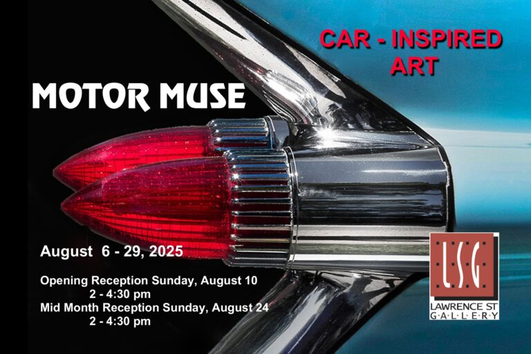 Rev your motors one more time down Woodward Avenue for the Dream Cruise-inspired exhibition at Lawrence Street Gallery in Ferndale. Art from the minds and hearts of Detroit’s Motor City people is displayed for your pleasure. Put on your seat belts because this display will take you from photos of early automotive-inspired Detroit to today’s abstract response to automobiles.