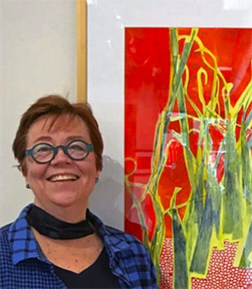 Laura Whitesides Host, a native Michigan artist living in Birmingham, Michigan, is one of the founding members of Lawrence St. Gallery, an artist – run gallery, now in its 34th year of business, located in Ferndale, Michigan. A BFA graduate majoring in painting and ceramics from the University of Michigan’s Architecture and Design College, she continues to paint in water mediums and is also currently actively involved in monotype printmaking. She is involved in the art community as a board member of the Michigan Water Color Society for many years, a board member of the Birmingham Society of Women Painters and a instructor at the Birmingham Bloomfield Art Center since 1993 teaching experimental watermedia and printmaking. Her involvement in Lawrence St. Gallery has enabled Host to help southeast Michigan area artists exhibit their work in juried exhibits and solo shows, which fulfills the gallery’s (and her) mission. Host’s work has been in numerous juried competitions as well as in group and solo exhibits