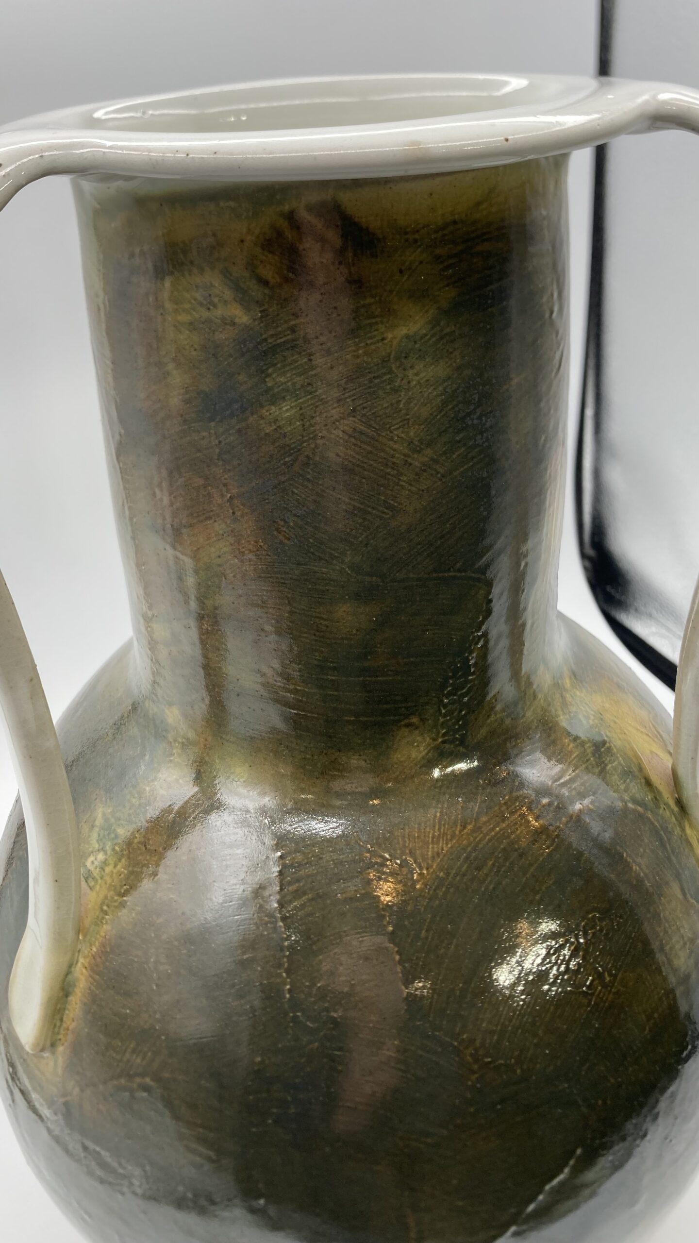 Ceramic stoneware with slip and colored underglaze 16×10